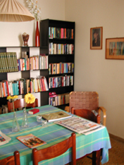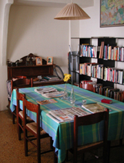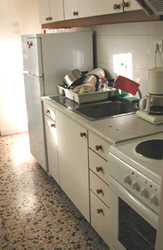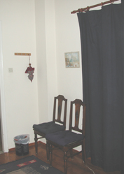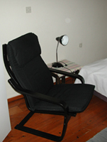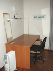 ... extra stolar ... standarden i rummen är enkel som synes. Värmeelement finns för kyliga nätter. Ett fräscht badrum med duschkabin, handfat,toalett och tvättmaskin delas av stipendiaterna och eventuella gäster. |