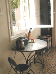 ... och kanske intas frukosten vid det lilla köksbordet av marmor |